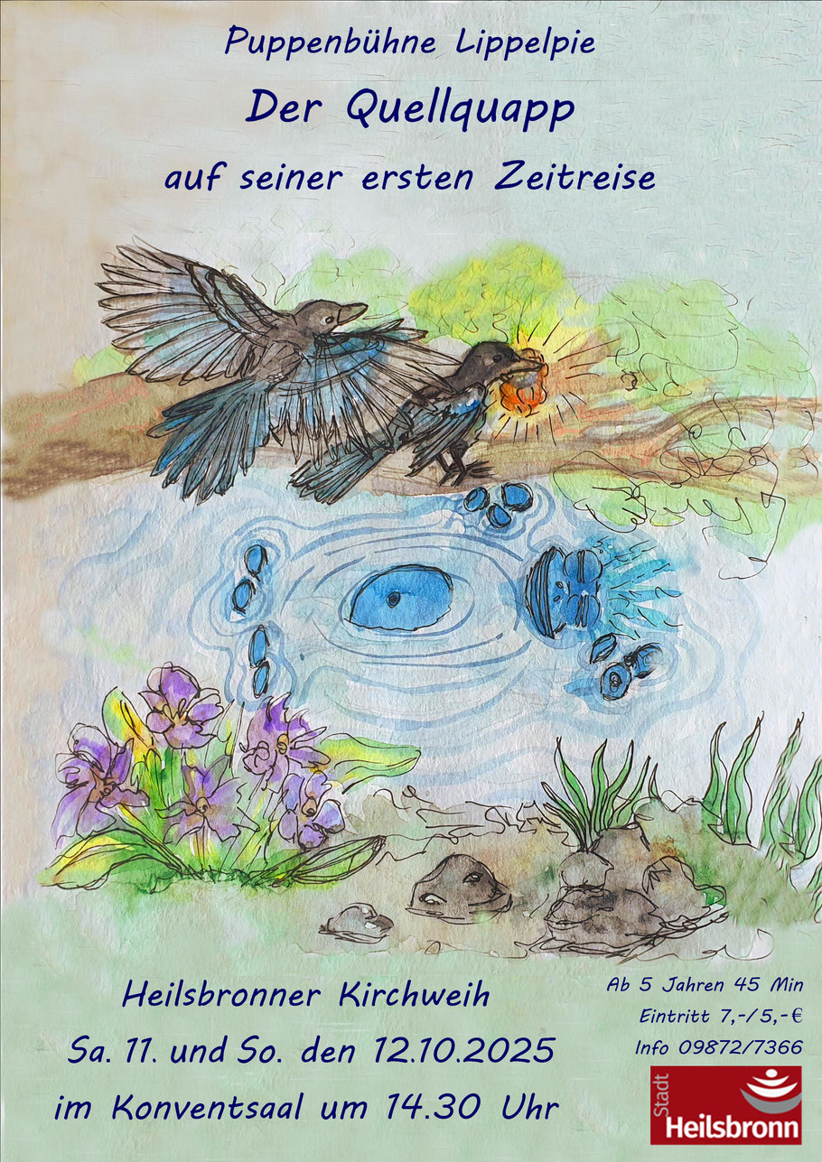 In dieser Geschichte erlebt ihr wie es dazu kam das der Quellquapp in der Zeit reisen kann. Die beiden diebischen und zankenden, Elster Mechthild und Gerta, spielen dabei eine wichtige Rolle. Ihr begegnet Heilsbronn in der Zeit um 1500 und reist mit dem Quellquapp ihn ins Jahr 1740 wie es da wohl in Heilsbronn war? Natürlich reist der Quellquapp auch in unsere Zeit dorthin wo auch ihr sehr gerne seid. Wir freuen uns mit euch und dem Quellquapp auf ein neues Abendteuer.